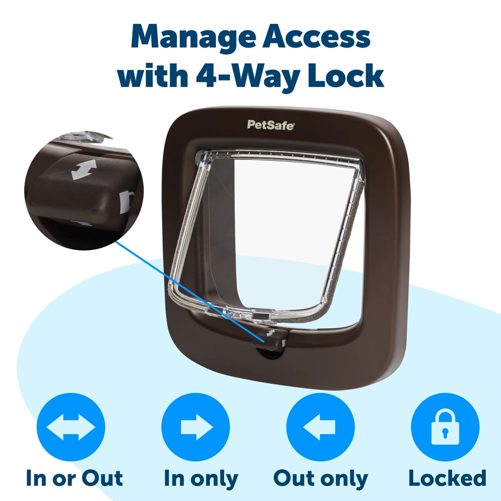 The PetSafe Manual-Locking Cat Flap is a practical and economical solution for giving your cat access to the outdoors while keeping control over when they enter and exit. The 4-way locking system provides options to fully unlock, lock, or control whether the flap is only for in or out access.