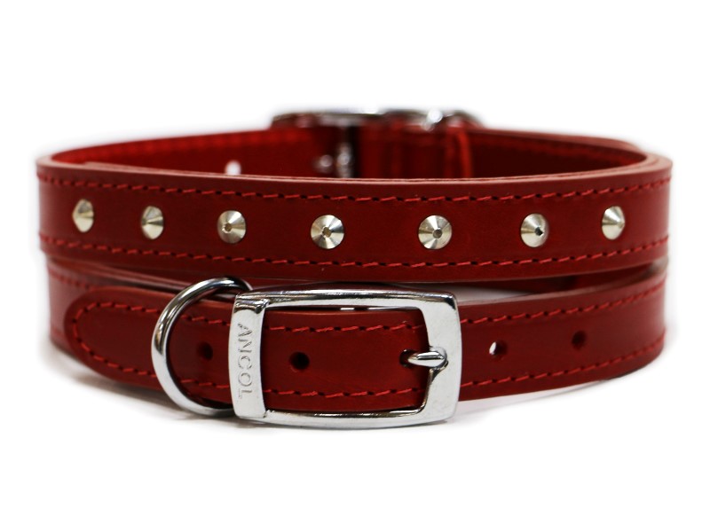 Ancol S6 Red Sewn Studded Dog Collar 22"