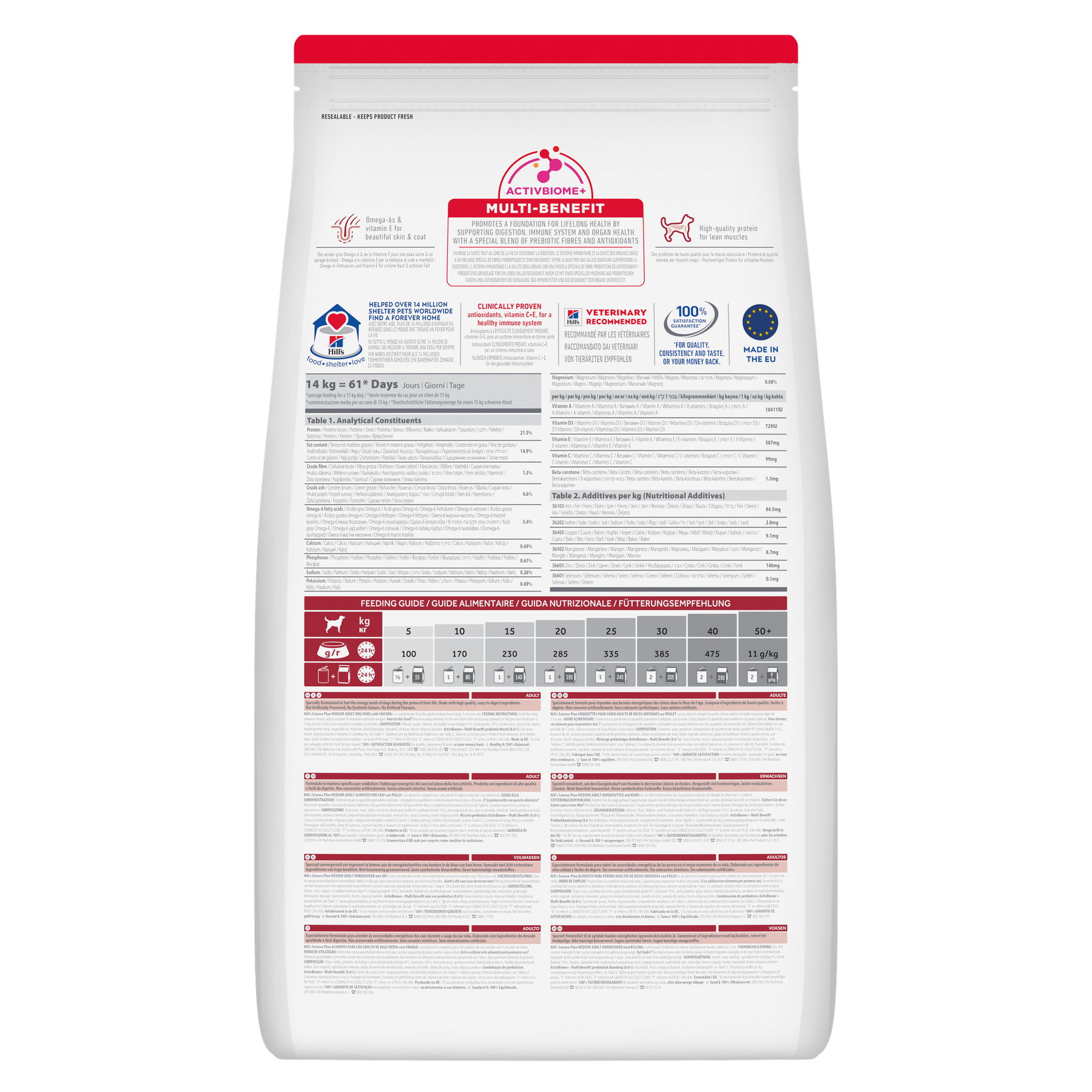 Hill's Science Plan Medium Breed Adult Dog Food with Chicken is 100% healthy and balance nutrition. It is specially formulated with ActivBiome + Multibenefit Technology, a blend of prebiotic fibers and antioxidants. Science-based nutrition to support long, healthy lives.