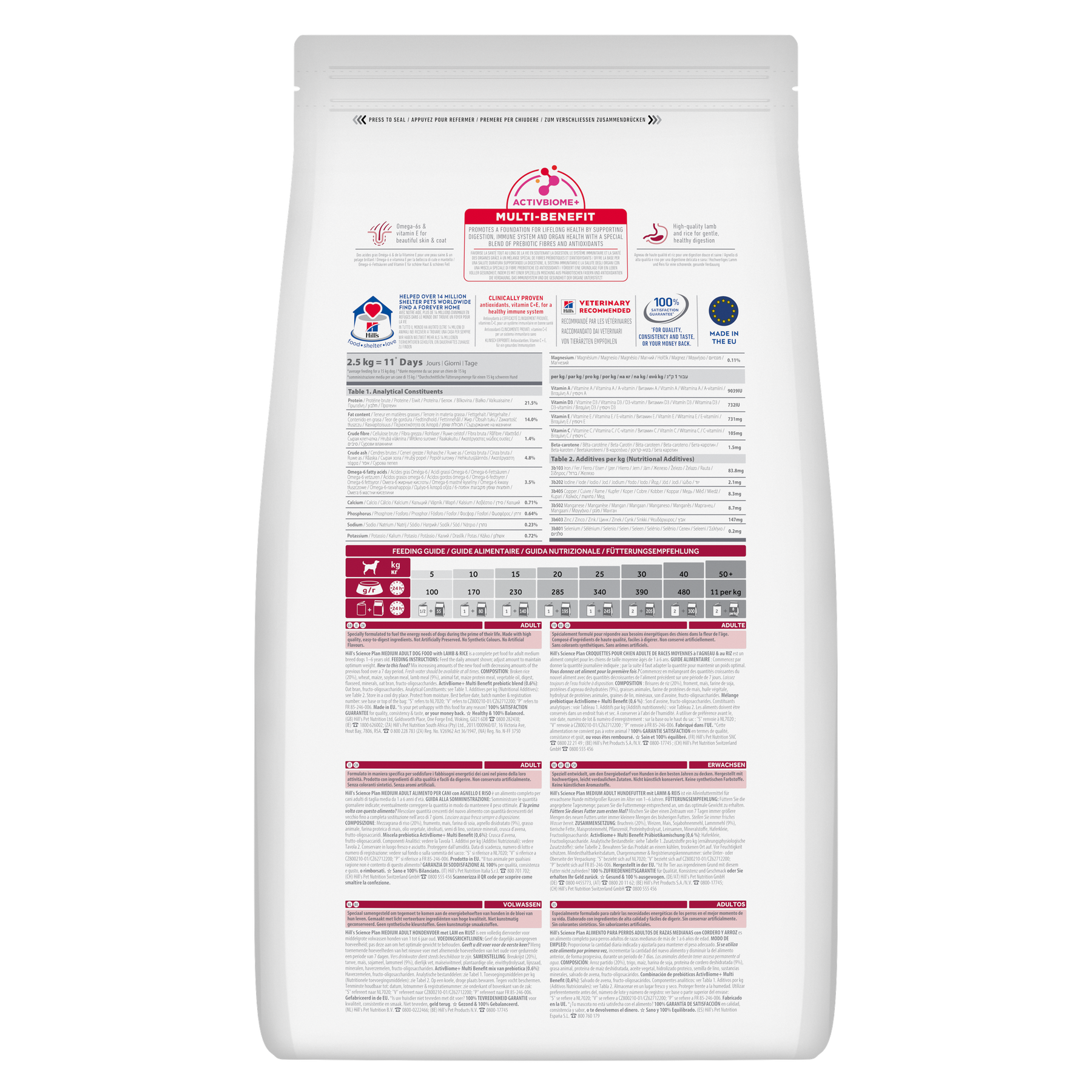 Hill's Science Plan Medium Breed Adult Dog Food with Lamb & Rice is 100% healthy and balance nutrition. It is specially formulated with ActivBiome + Multibenefit Technology, a blend of prebiotic fibers and antioxidants. Science-based nutrition to support long, healthy lives.