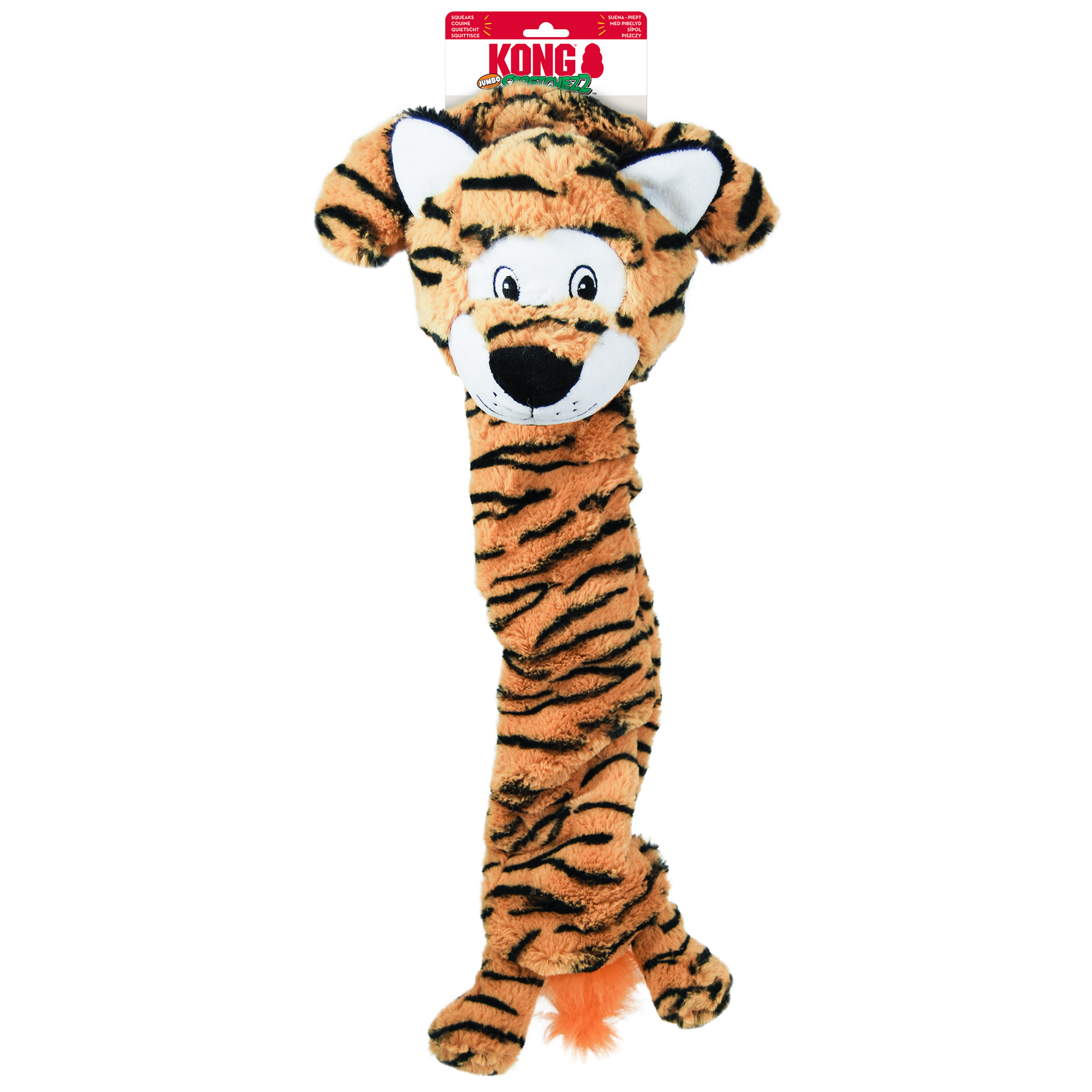 KONG Jumbo Stretchezz are an extra-large addition to the Stretchezz family and will add a spring in your dog's step with over 2 1/2 more feet to love. Three fun squeakers and crinkle sounds span the long stretchy body to ignite dogs' instincts, gearing up for play. These mighty characters are ideal for interactive games like tug and fetch, and have less stuffing for less mess.