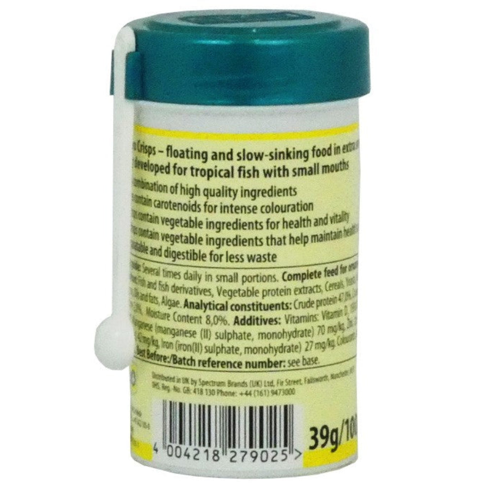 - Micro-sized crisps for small tropical fish with tiny mouths
