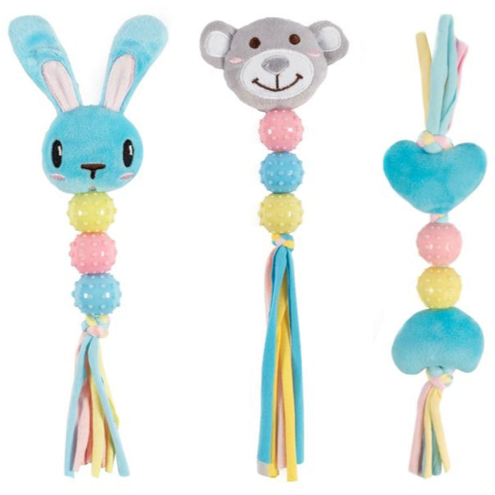 The Ancol Small Bite Teether Assorted is a gentle and fun teething toy designed specifically for puppies and small dogs. Featuring a soft, stretchy fabric with gummy knobbles and a built-in squeaker, it helps soothe teething discomfort while keeping your pet entertained. Perfect for small breeds and ideal for supervised play.