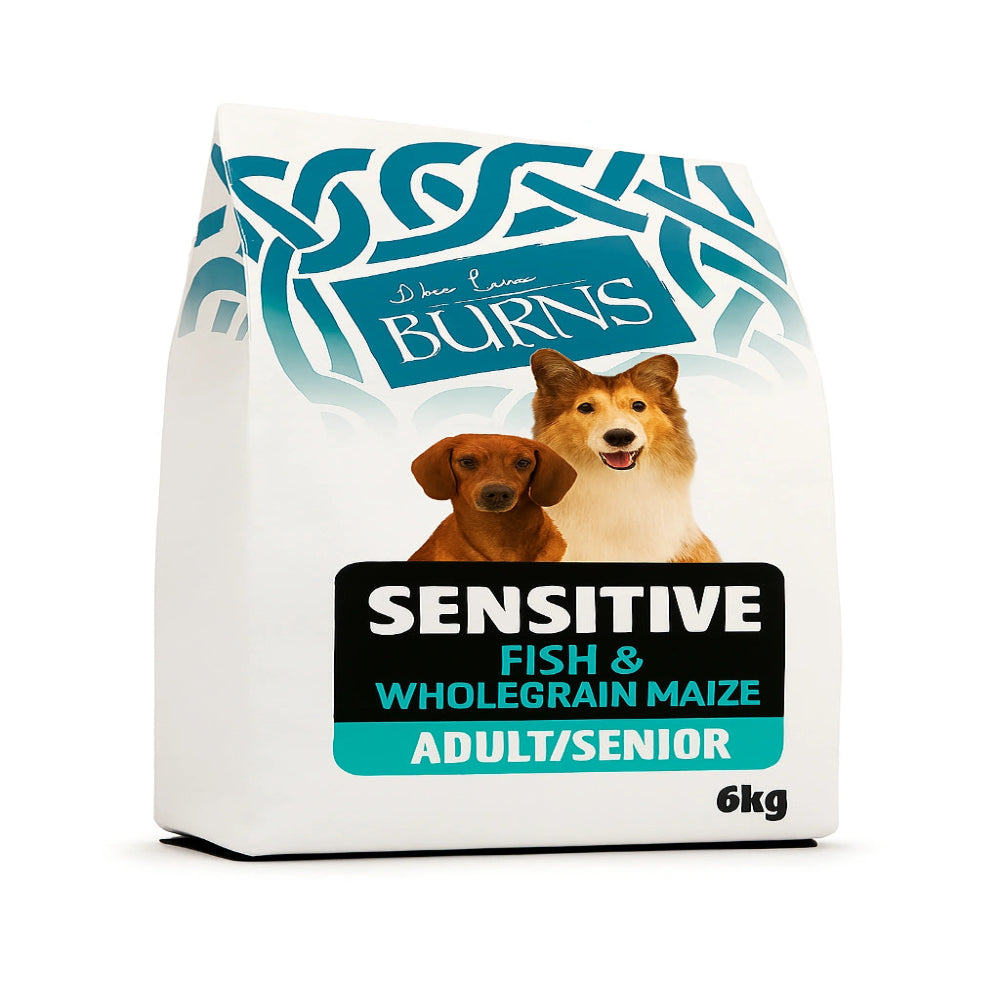 Burns Sensitive Dog Food is specially formulated for dogs with food sensitivities. Made with highly digestible fish protein and a novel carbohydrate source, wholegrain maize, it supports healthy skin, a shiny coat, and optimal digestion. Free from common allergens such as wheat, soya, dairy, artificial colours, and preservatives, this diet is ideal for sensitive dogs of all breeds and sizes.