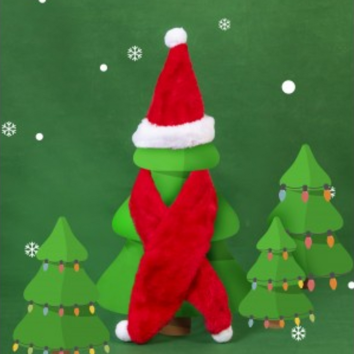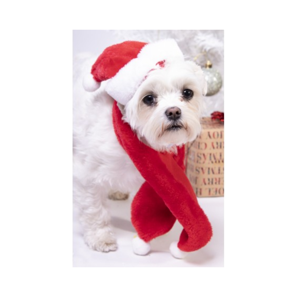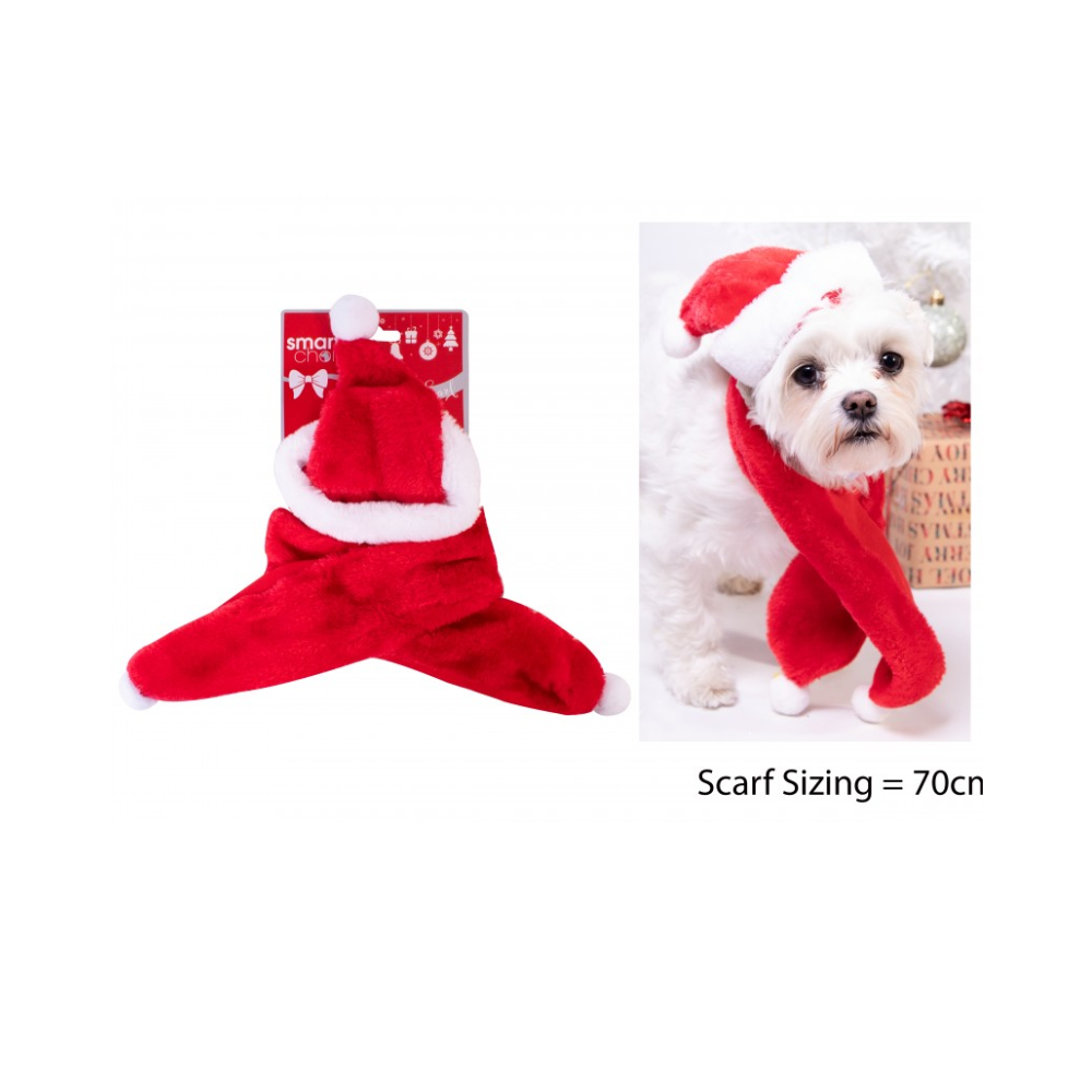 Give your pet a new look this Christmas with this soft and sweet Christmas hat and scarf set! Cute and adorable, this set makes a great talking point and will look great on a Christmas walk. With an elastic strap for added security.