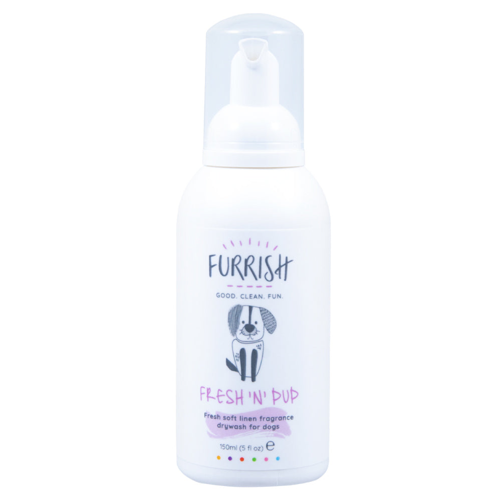 Furrish Fresh ‘n’ Pup Drywash – 150ml - Whether keeping them clean in between bath time or after a messy walk in the park, this gentle but effective cleanser is combined with conditioning agents to clean, soften, and condition the coat whilst removing static and preventing knots.