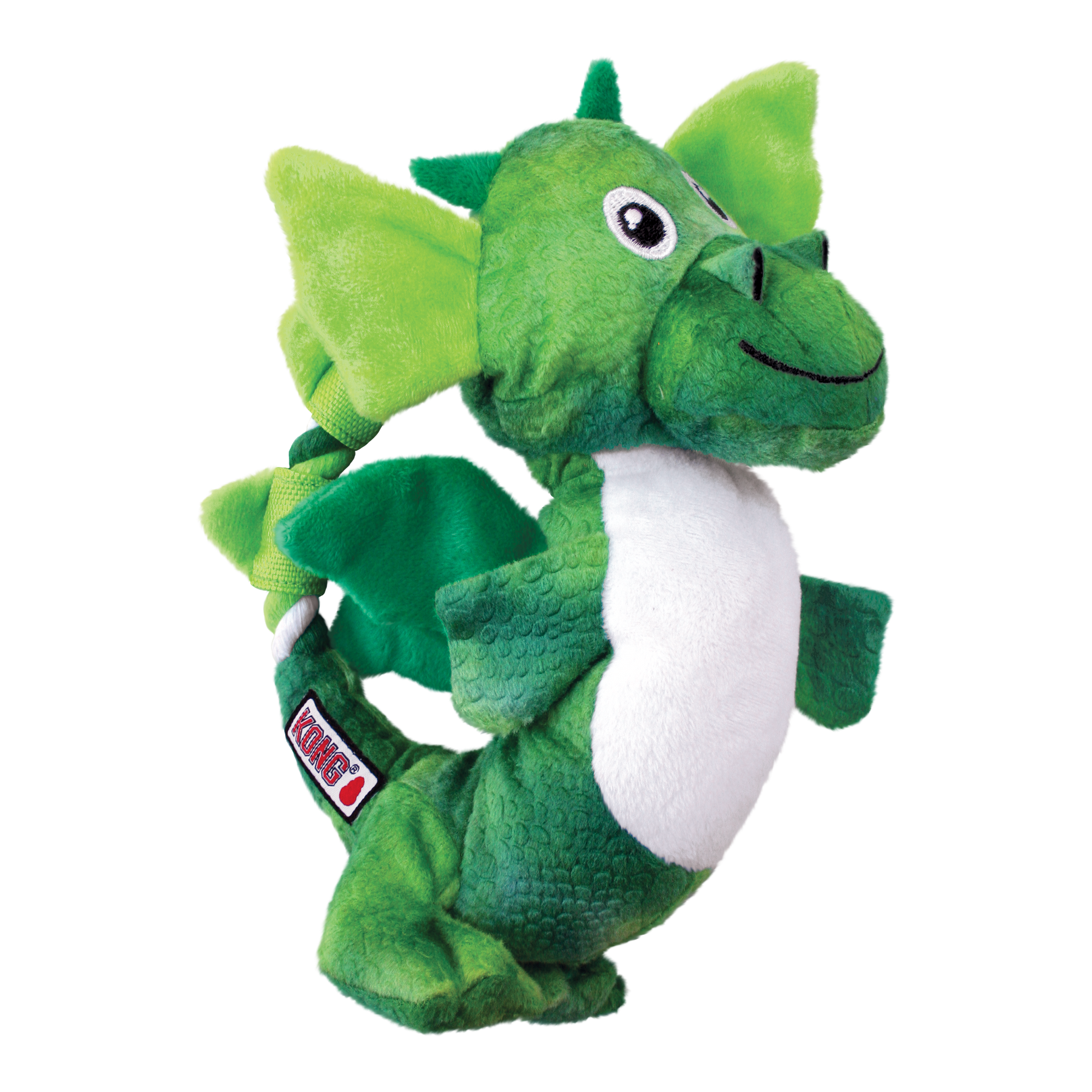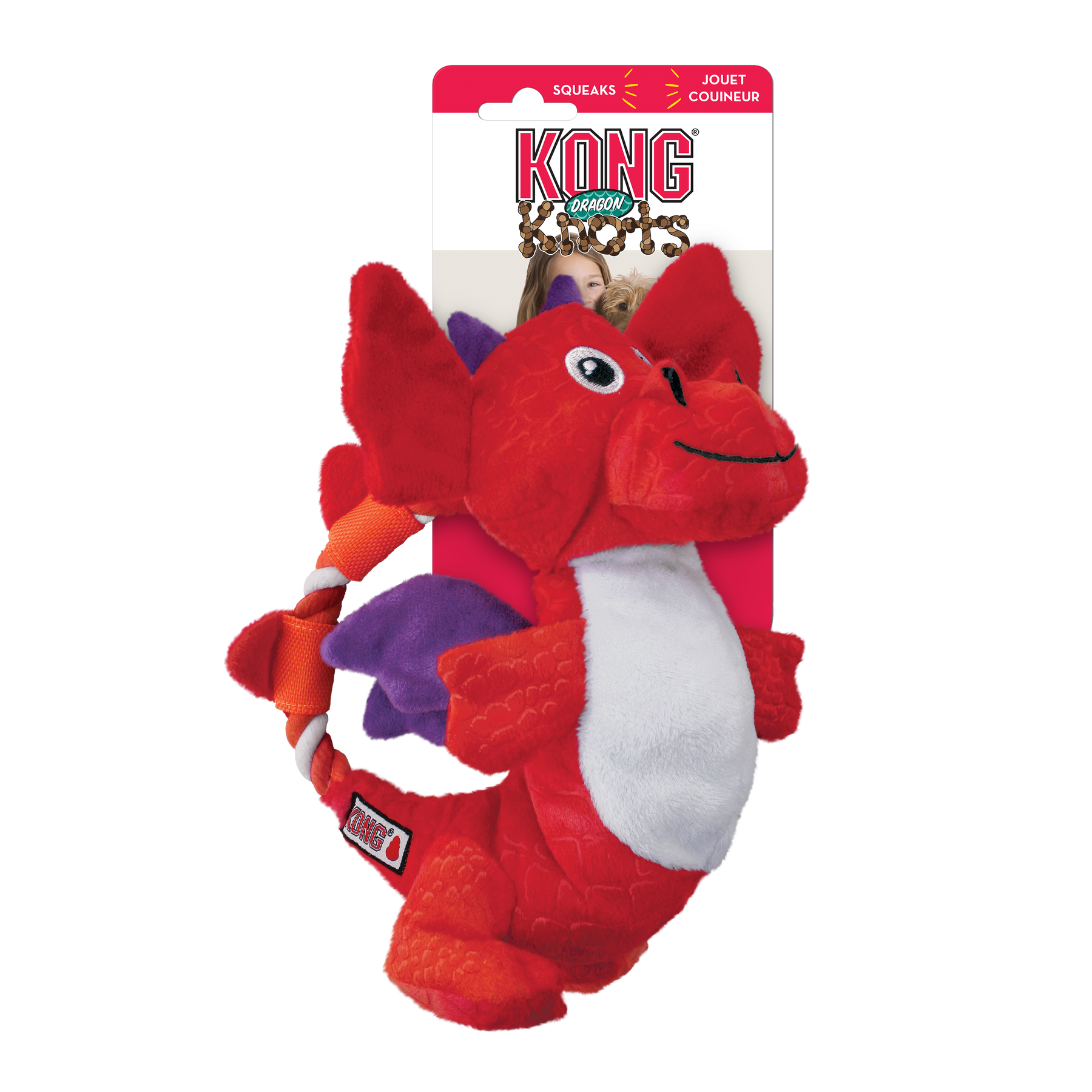 KONG Dragon Knots are a whimsical addition to the Knots collection. The realistic feel of the internal knotted rope, big body squeaker and crinkling sound of the magical wings get dogs geared for play and satisfies their natural instincts. The strong rope knot tug toy has minimal stuffing for less mess and charms with long-lasting fun.