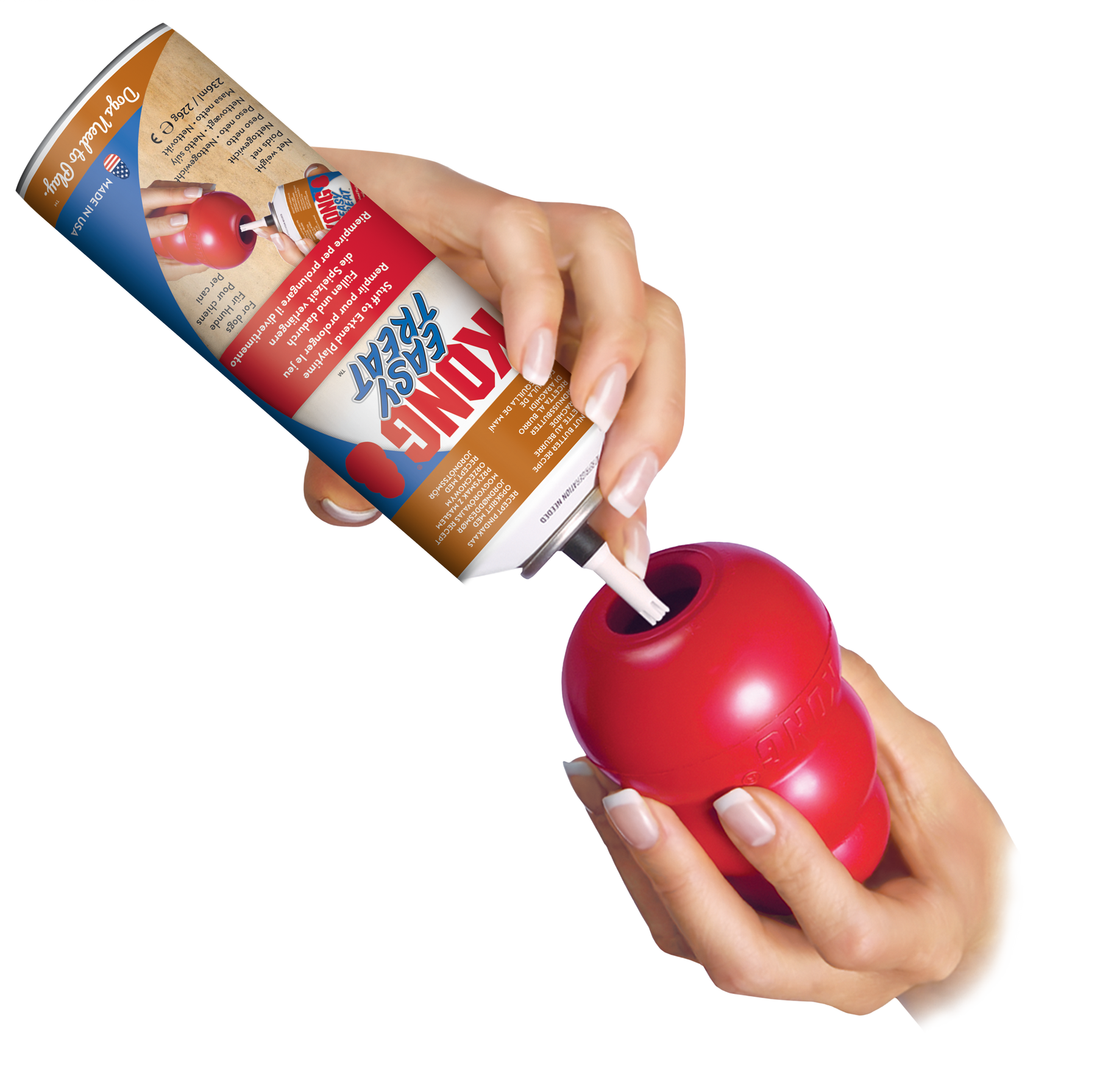 KONG Peanut Butter Easy Treat™ is a delicious treat that delights all types of dogs while providing an easy no-mess solution for pet parents. Made in the USA, this highly-digestible and trans-fat free treat is an enticingly delicious addition when added to a stuffed KONG. A uniquely designed nozzle easily controls the amount of KONG Easy Treat™ while also having the added benefit of a convenient, no mess stuffing solution. Want to make your stuffed KONG last longer? Freeze a stuffed KONG, topped with KONG Peanut Butter Easy Treat™ for a longer-lasting, mind occupying challenge. No Refrigeration required.