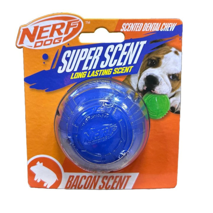 The Nerf Dog TPR Bacon Solid Core Ball is a durable and engaging toy designed to keep your canine companion entertained. Crafted from tough thermoplastic rubber (TPR) and polypropylene (PP), this solid-core ball is built to withstand vigorous play while remaining gentle on your dog's teeth and gums. Infused with a long-lasting bacon scent, it stimulates your dog's senses and encourages active play.