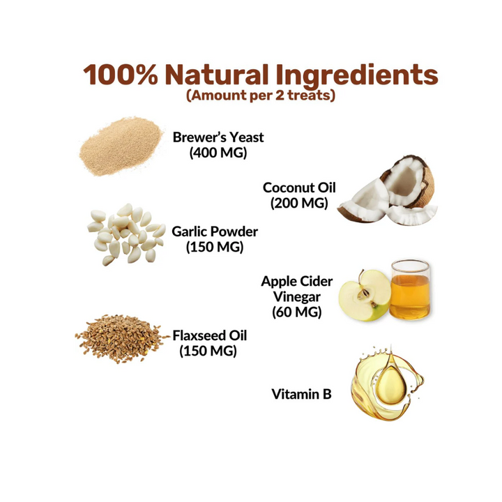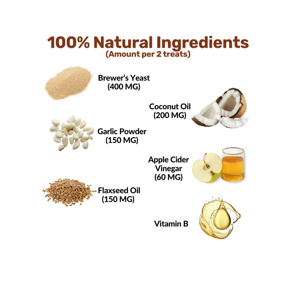 Natural Pest Protection: Helps naturally repel fleas, ticks, and mites using ingredients like garlic, brewer’s yeast, and coconut oil.