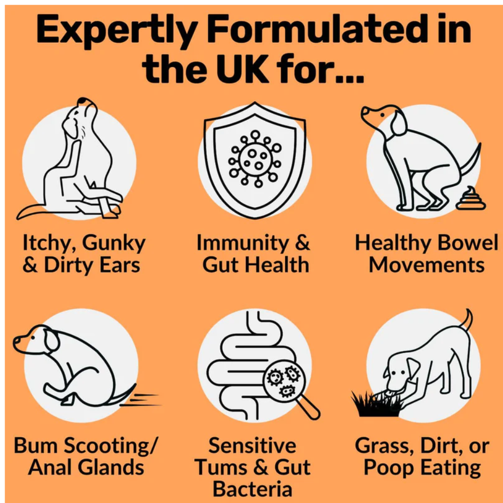 Enhances Immune Function: Postbiotics derived from Saccharomyces cerevisiae contribute to immune system support - Promotes Healthy Bowel Movements: Ingredients like pumpkin and flaxseed support regular and firm stool
