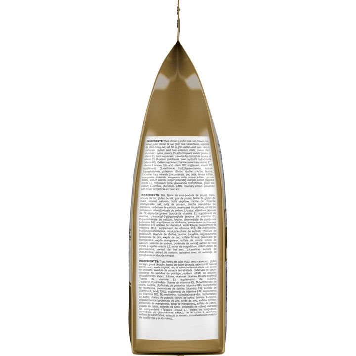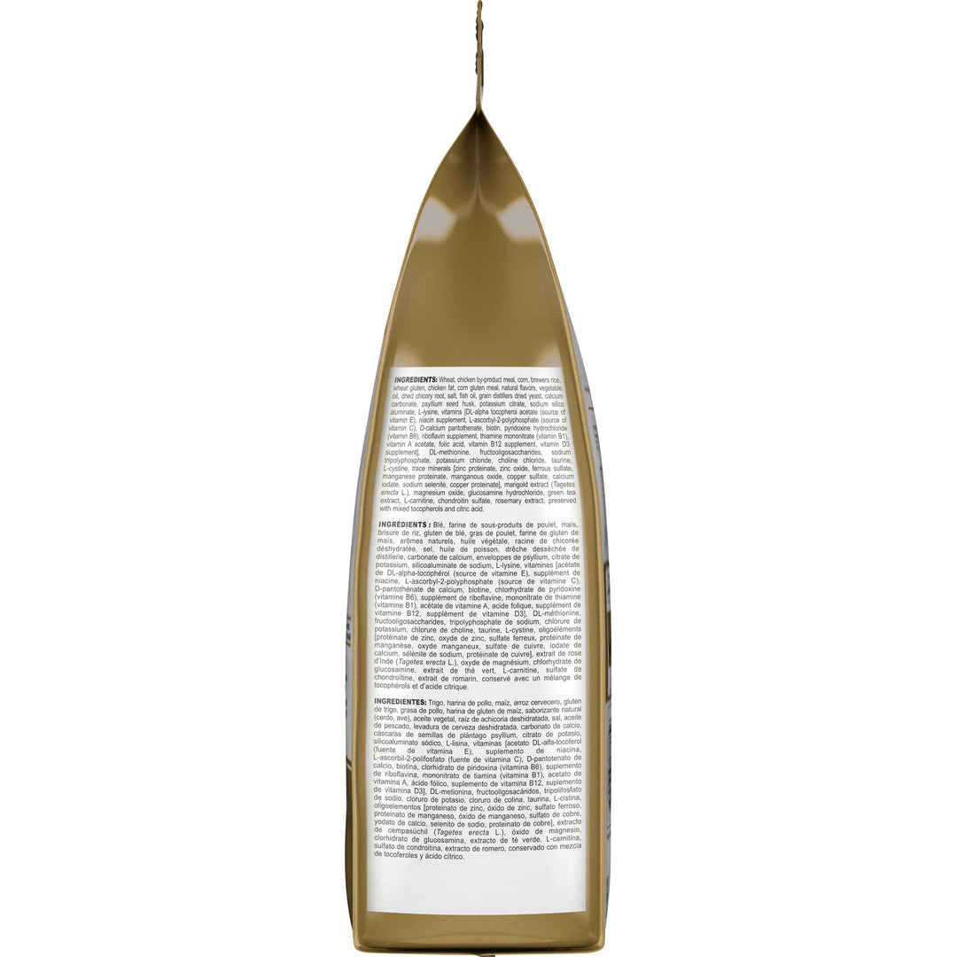 • Composition: Dehydrated poultry protein, rice, maize, wheat, vegetable protein isolate, animal fats, maize gluten, hydrolysed animal proteins, minerals, soya oil, chicory pulp, fish oil, yeasts, fructo-oligosaccharides, psyllium husks, borage oil, hydrolysed crustaceans, marigold extract, hydrolysed cartilage