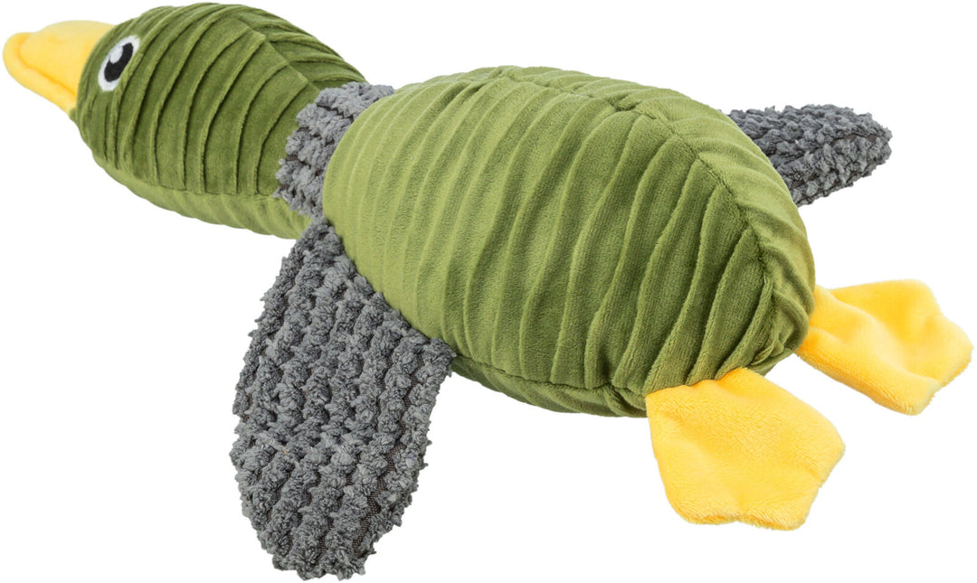 The Trixie Eco Duck Dog Toy (40 cm) is a delightful and sustainable toy for your furry friend. Crafted from 98% recycled materials, this plush duck features a squeaker to engage your dog's senses and promote playful activity.